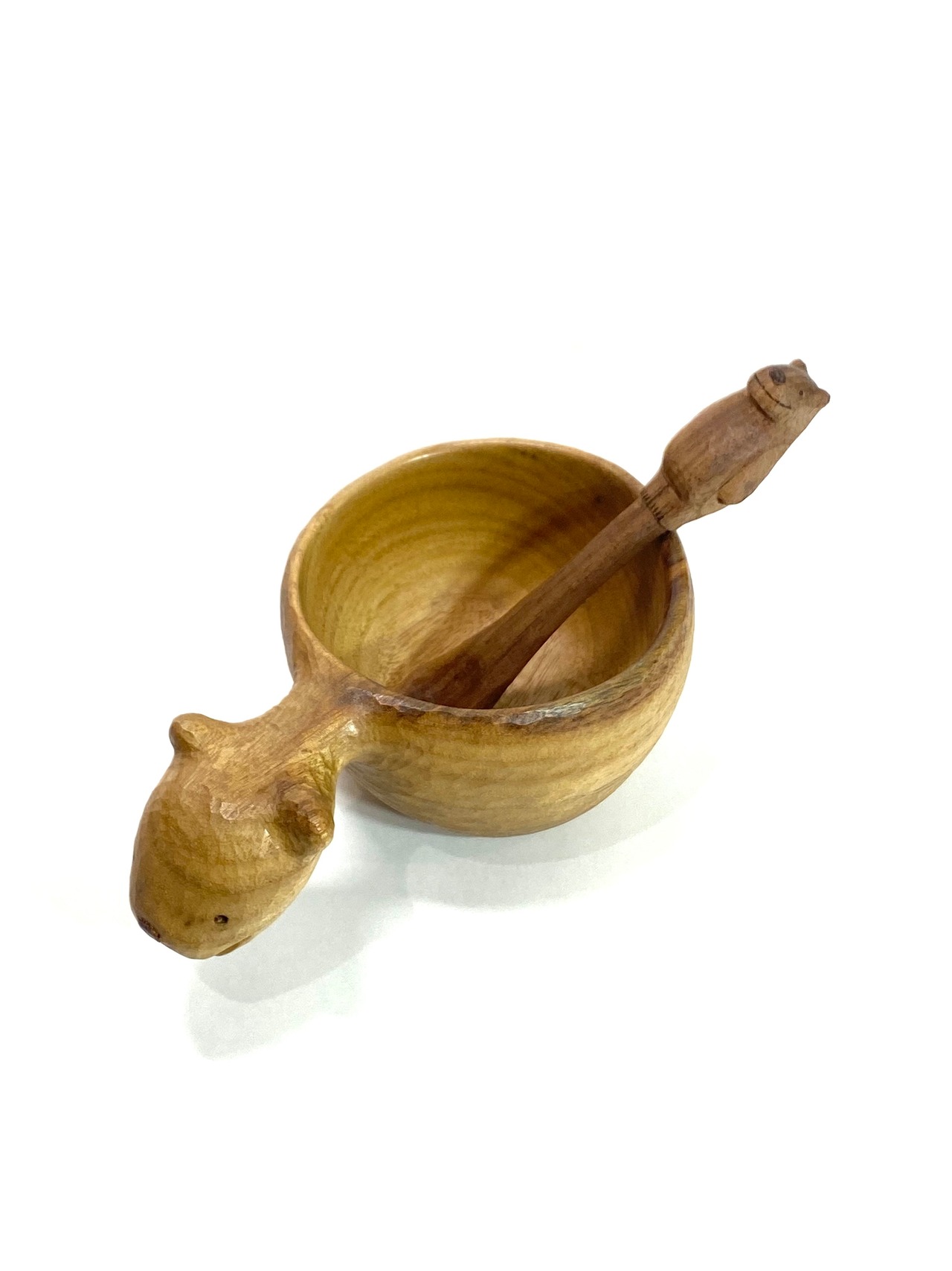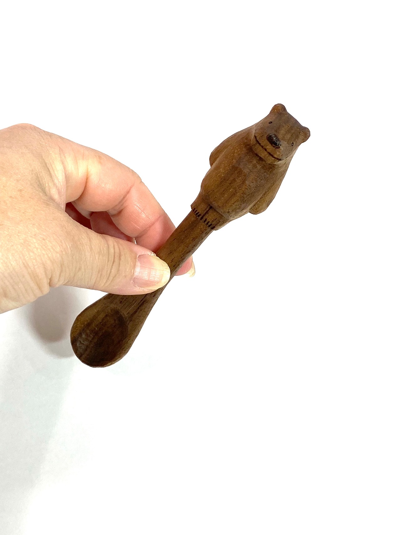 一本彫りで制作しています。木目が美しいウォールナット材を使用しており、手仕事の温もりを感じられる彫り跡も魅力の一つです。しろくまの部分が手に馴染むので、とても使いやすく、ティースプーンやデザートスプーン、お子様用のスプーンとしても使えます。