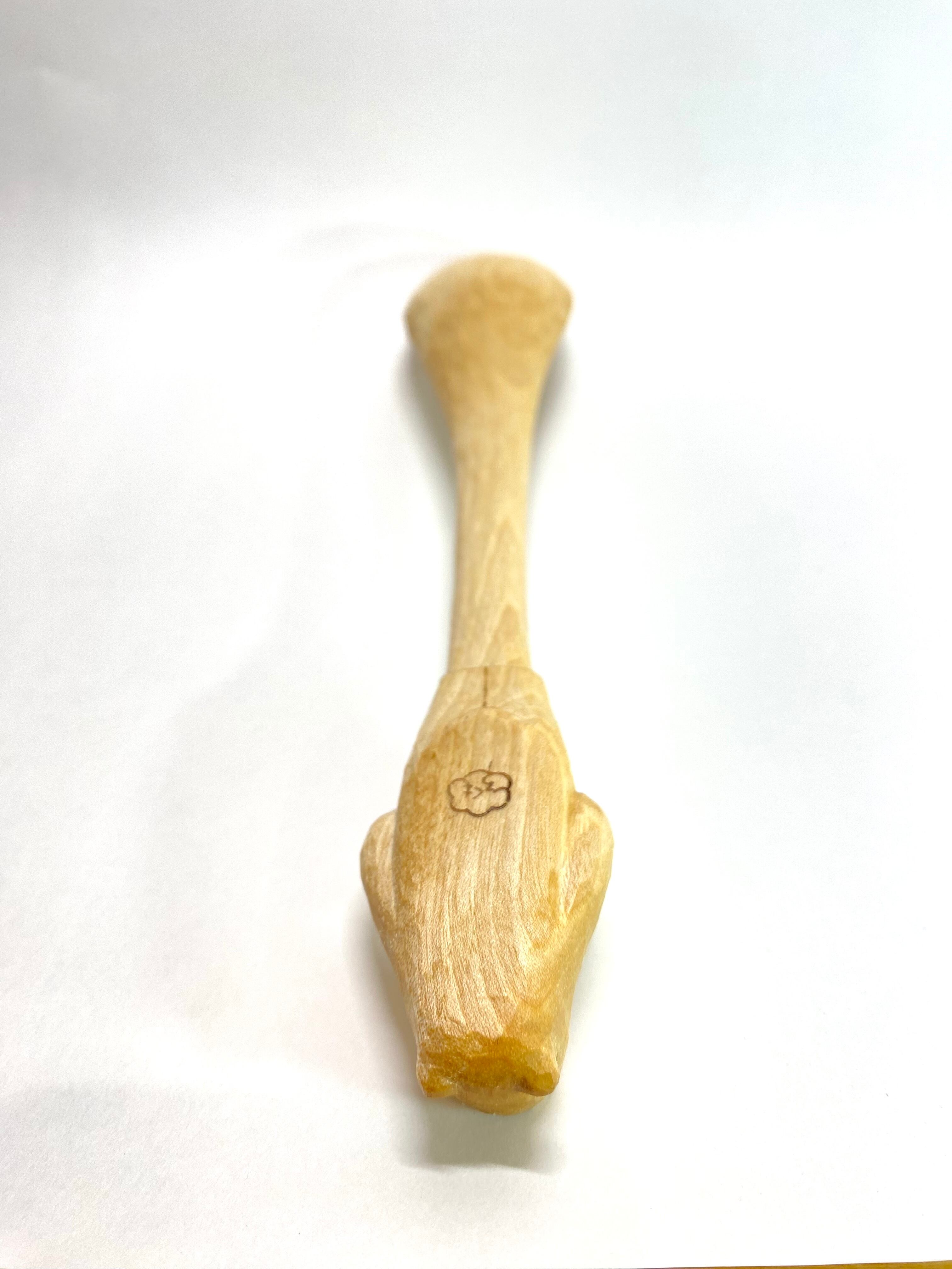 一本彫りで制作しています。樺材を使用しており、手仕事の温もりを感じられる彫り跡も魅力の一つです。しろくまの部分が手に馴染むので、とても使いやすく、カレーやチャーハン、シチューなどを食べる時に重宝します。